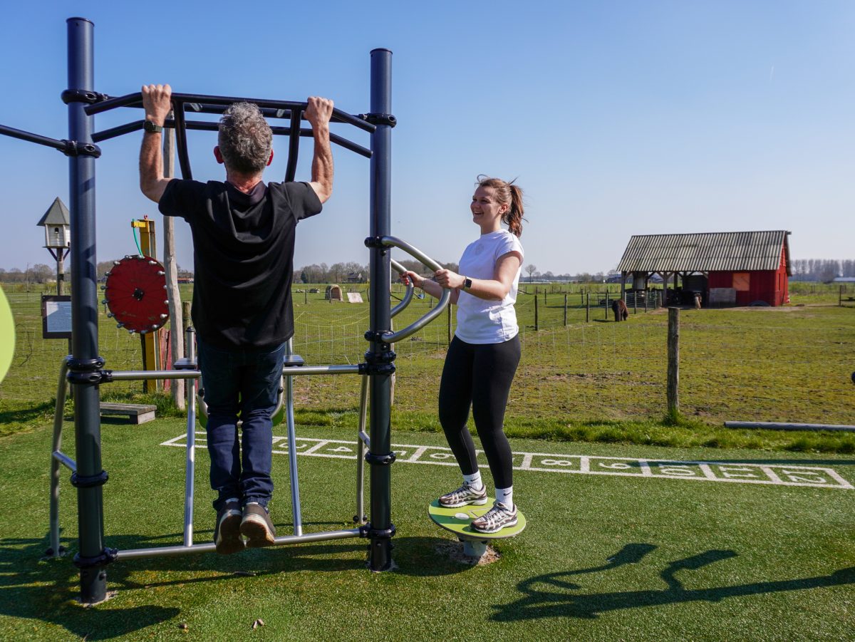 Bij Zorgboerderij de Horst en Millsveld is de beweegtuin ingericht als een vaste plek binnen de dagbesteding, waar beweging, buiten zijn en ontmoeten samenkomen. De toestellen sluiten aan op verschillende niveaus en maken het mogelijk om gericht te werken aan kracht, mobiliteit en coördinatie.