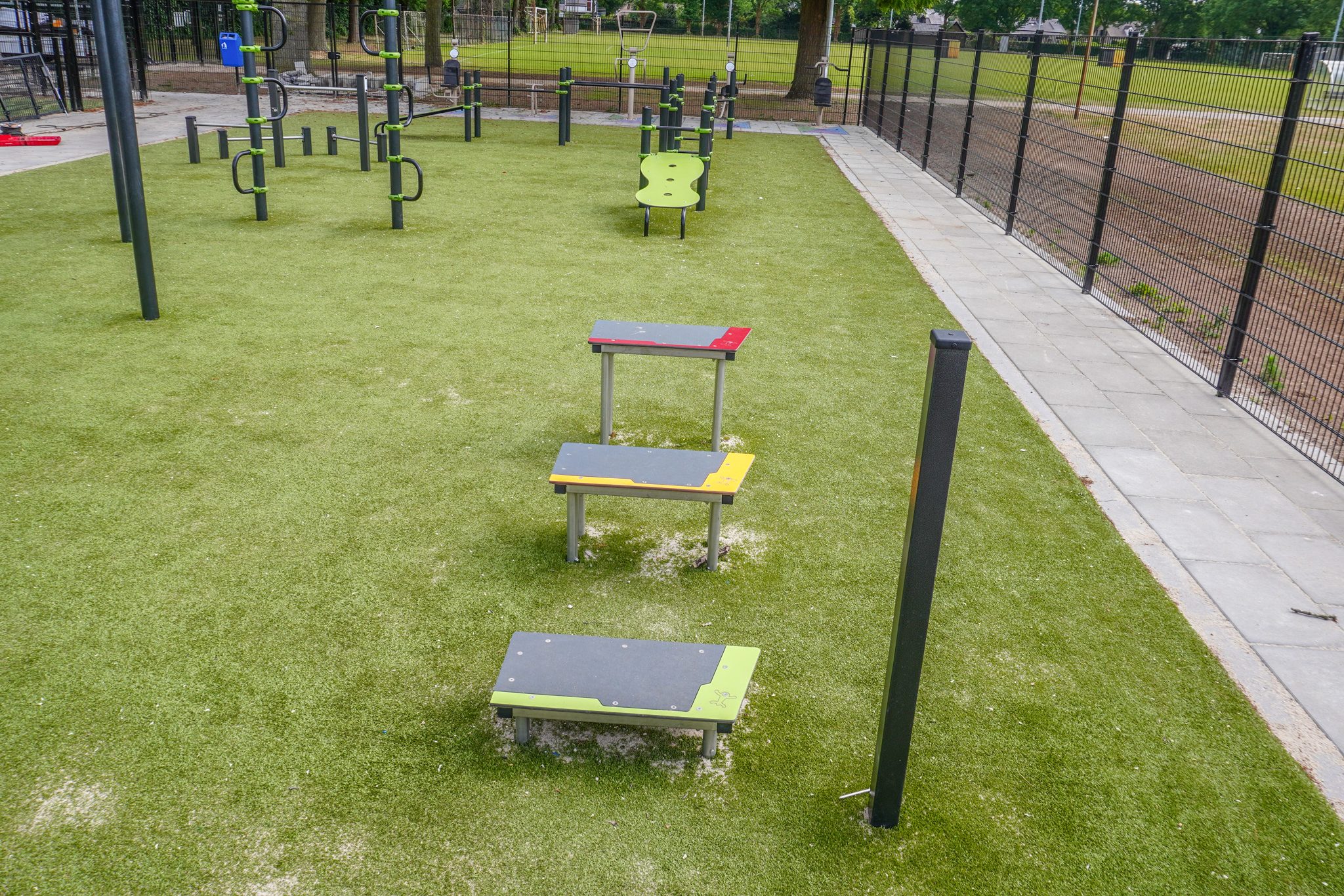 Daarnaast bevat het park één toestel uit de ACTI’Fit–lijn: de steps in verschillende hoogten. Deze steps bieden een laagdrempelige manier om te werken aan balans, sprongkracht en conditie.