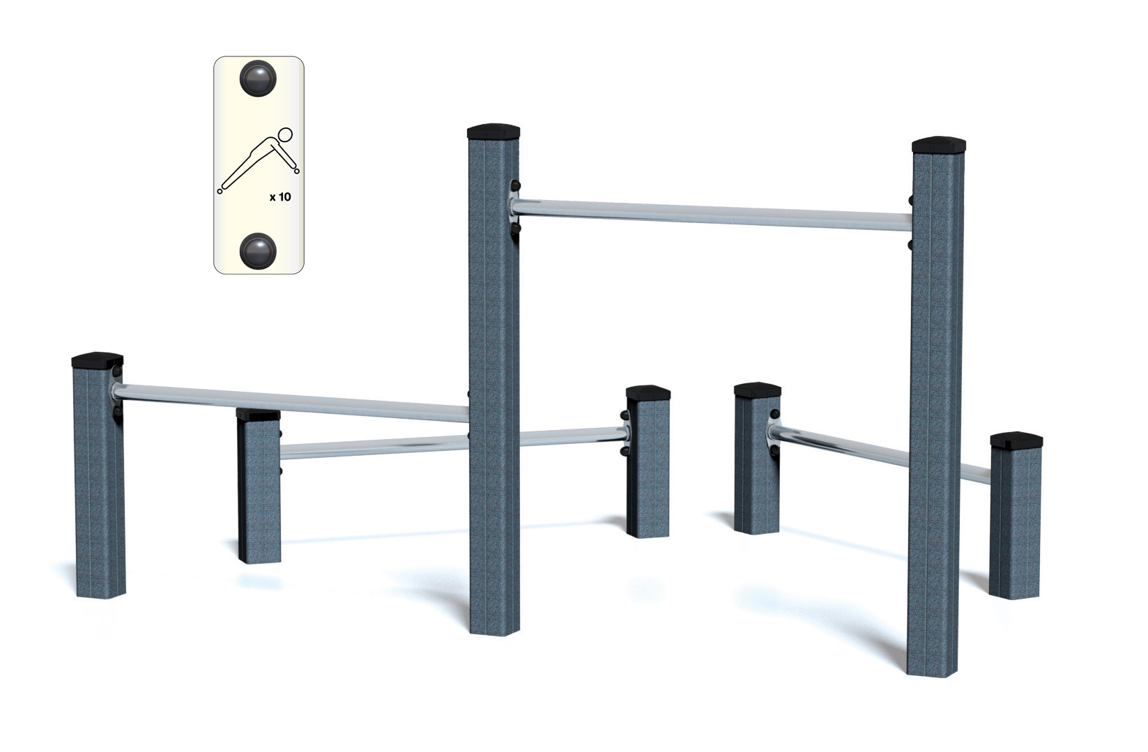 Push-up Senior JPS18-S-M – Met vier stangen op verschillende hoogtes biedt dit toestel ruimte voor diverse oefeningen zoals push-ups en dips, geschikt voor maximaal vier gebruikers.