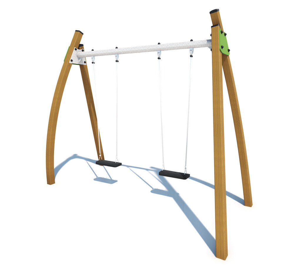 J432-C Schommel met twee standaard zitjes – Een tijdloze favoriet in een warme houtlook.