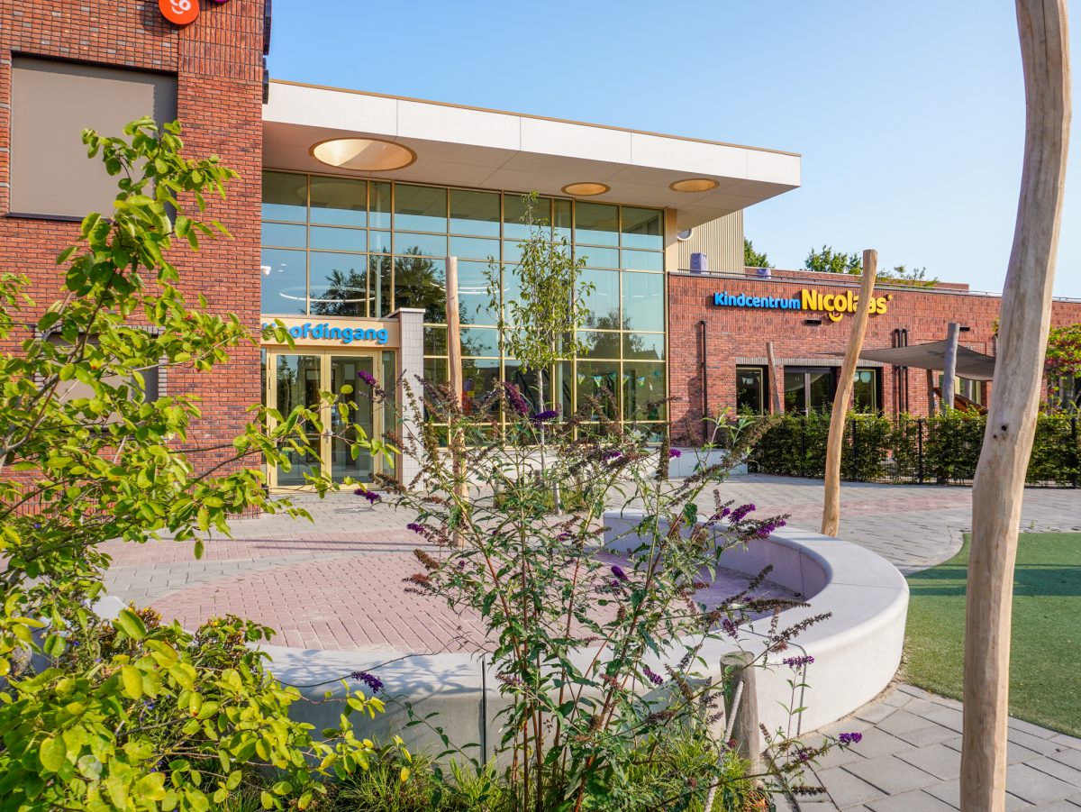 Bij Kindcentrum Nicolaas is zo een samenhangende en uitnodigende buitenruimte ontstaan die kinderen elke dag prikkelt om actief te zijn