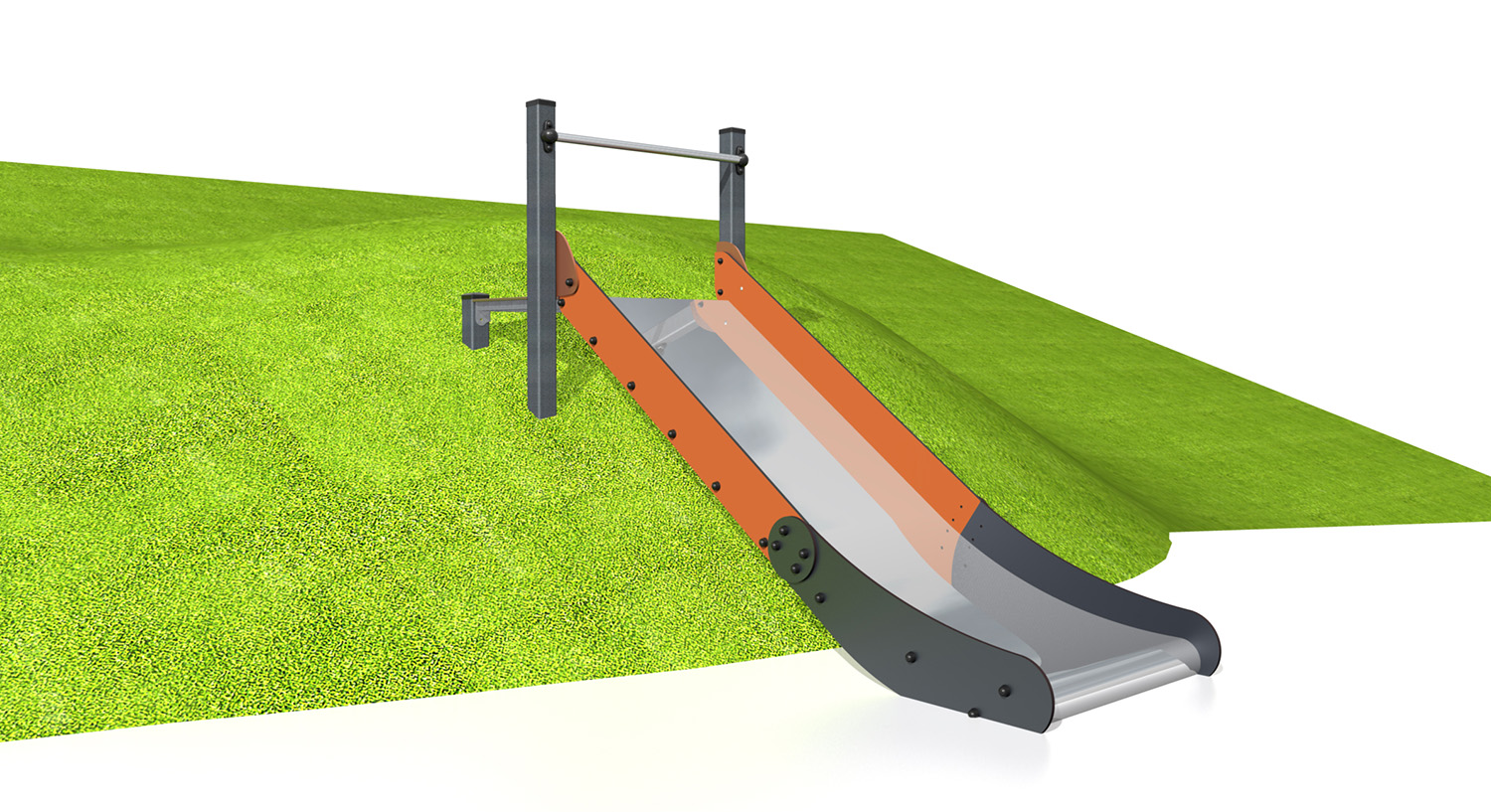 J1110 Inclusieve taludglijbaan – De glijbaan is geïntegreerd in een heuvel, waardoor het landschap onderdeel wordt van het spel. Kinderen ervaren spanning, snelheid en plezier in een veilige setting.
