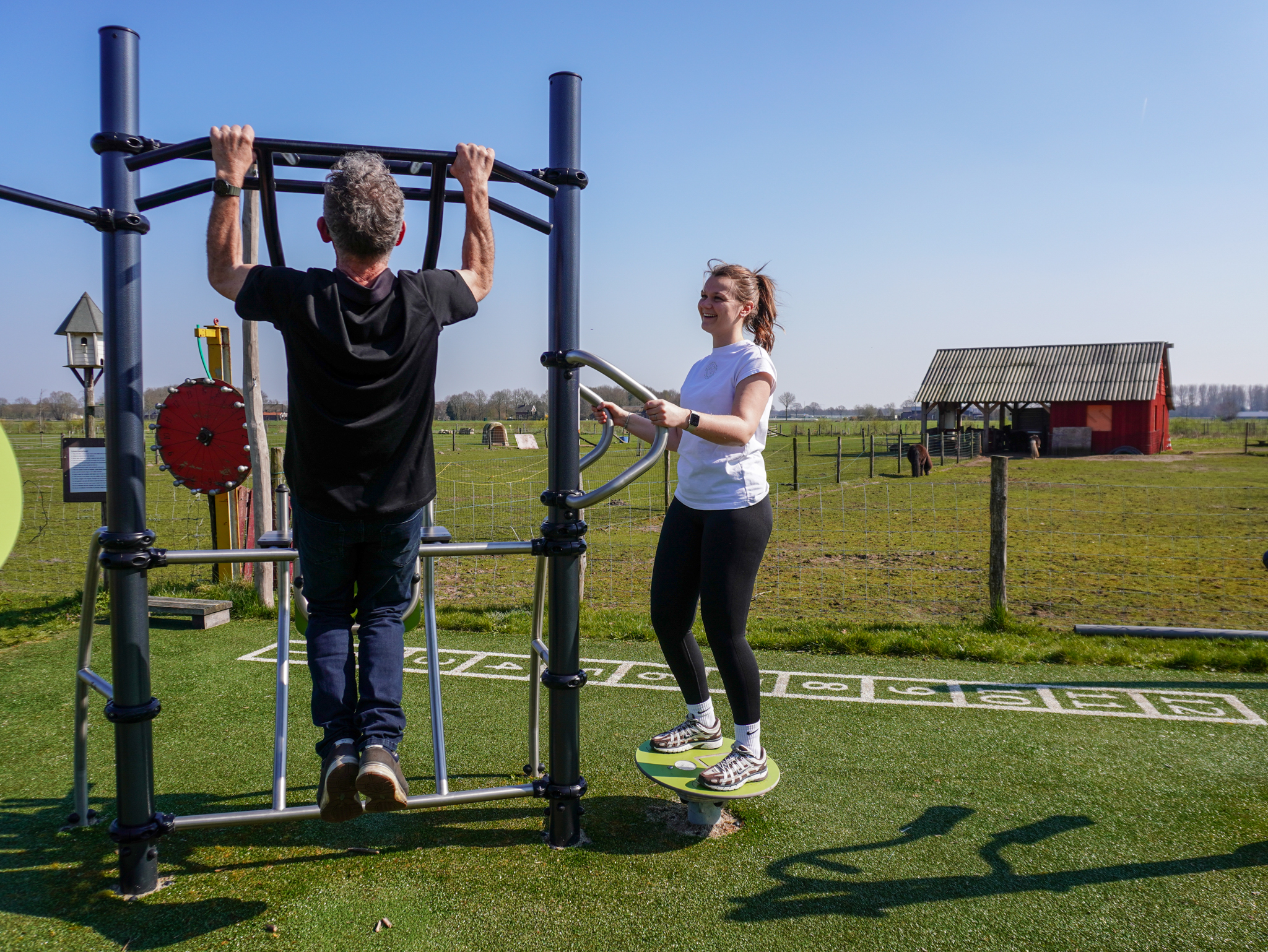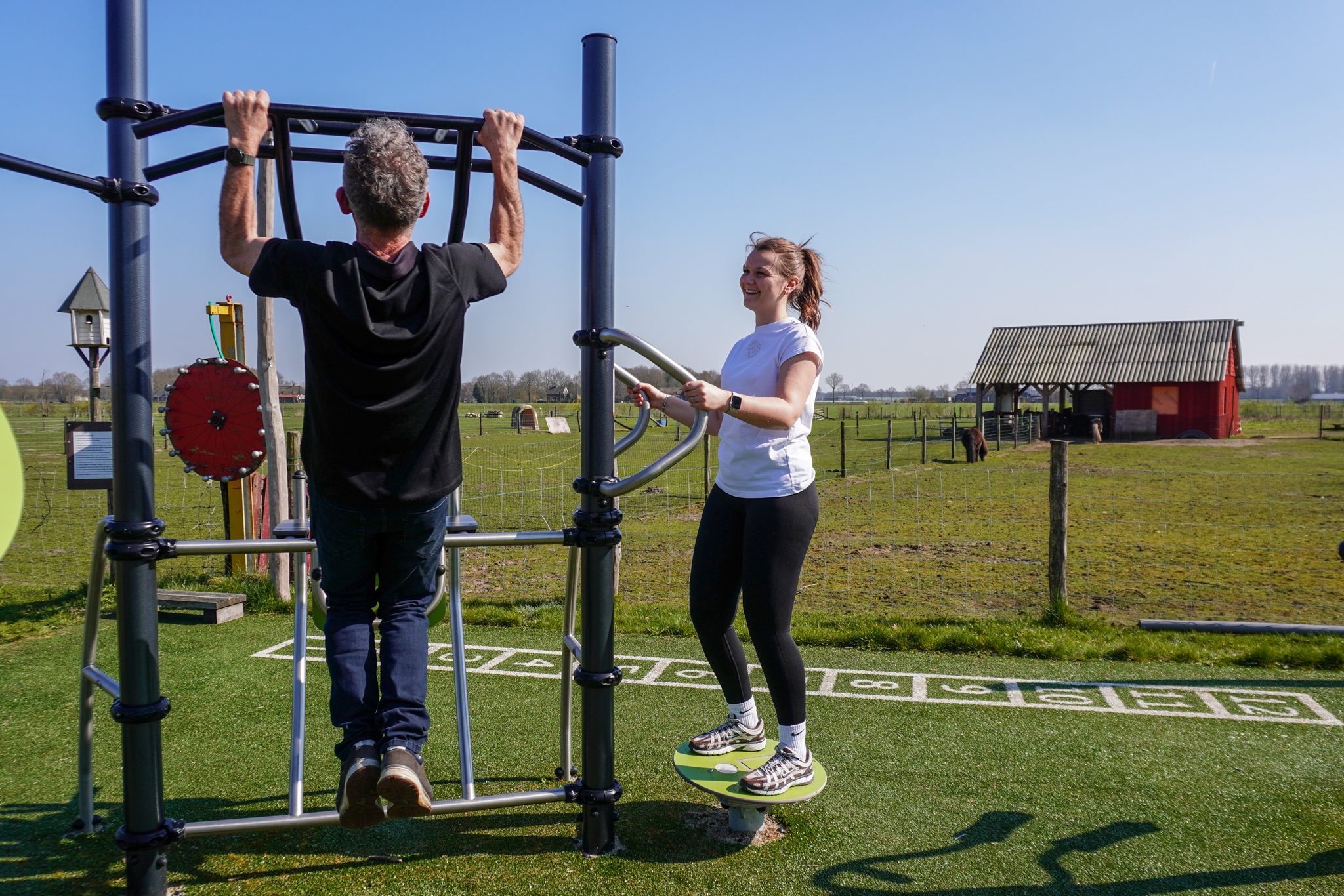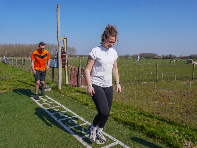 Wat deze locatie bijzonder maakt, is de plek van de beweegtuin binnen het terrein van Millsveld. Gebruikers bewegen hier midden in het groen, met uitzicht op dieren, landerijen en de natuurlijke omgeving van de zorgboerderij.