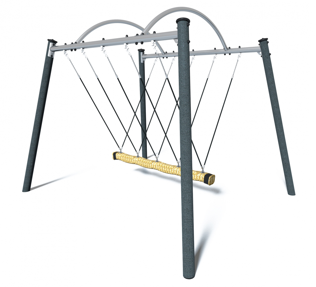 J433-C Schommel 1 babyzitje, 1 standaardzitje – Deze dubbele schommel is geschikt voor jong en oud. Met een veilige peuterschommel en een klassieke zitplank beleven kinderen van verschillende leeftijden samen speelplezier.