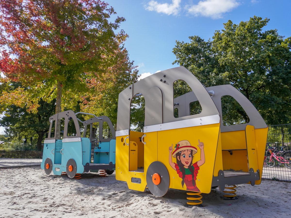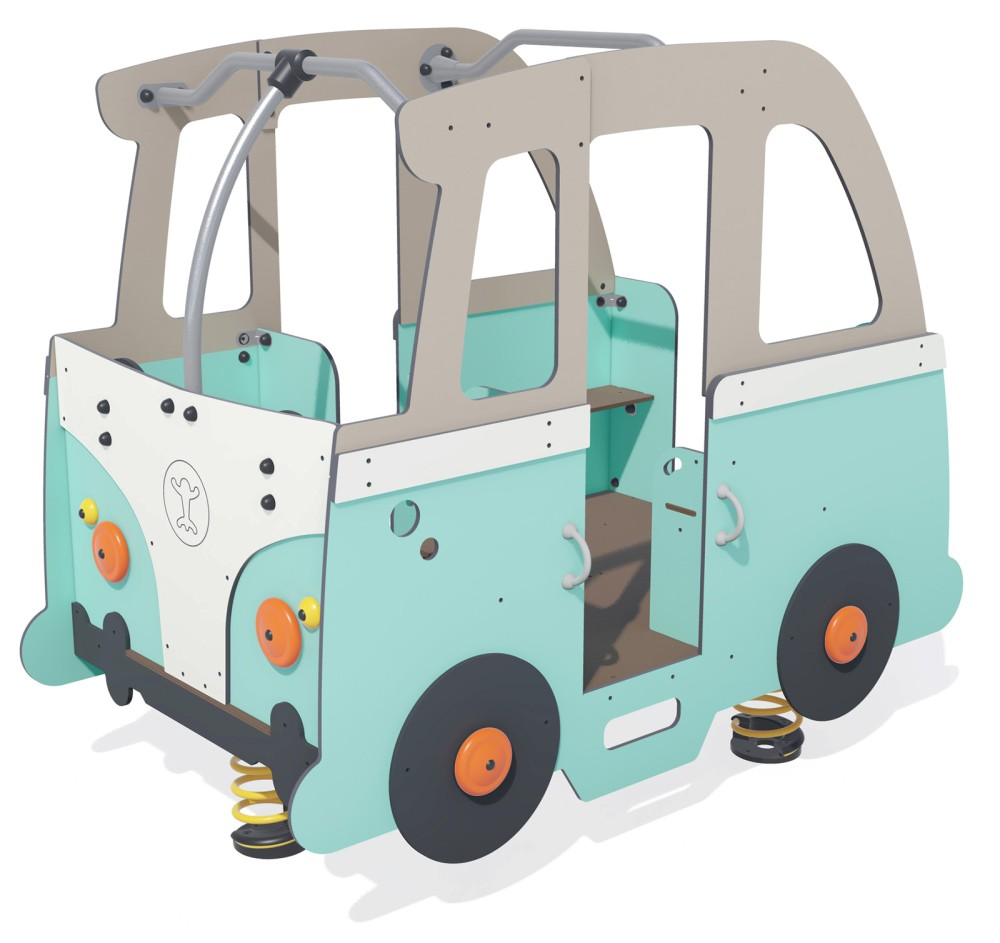 J951 Bus – De speelse bus nodigt uit tot rollenspel en sociale interactie. Dankzij de verende ondergrond voelt elke rit als een echt avontuur. Extra leuk: dit toestel laat zich perfect combineren met de speelcaravan voor nóg meer speelplezier.