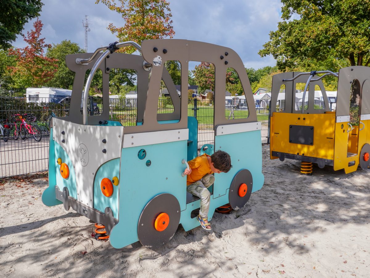En dat is nog lang niet alles. Verder vind je op het park gezellige speelhuisjes, thematische toestellen zoals de raket en de raceauto, verschillende schommels en glijbanen en nóg meer speelcombinaties die uitnodigen tot eindeloos ontdekken.