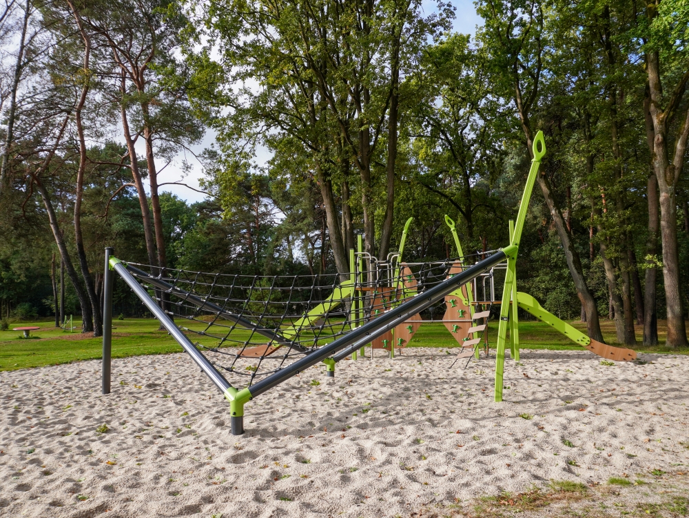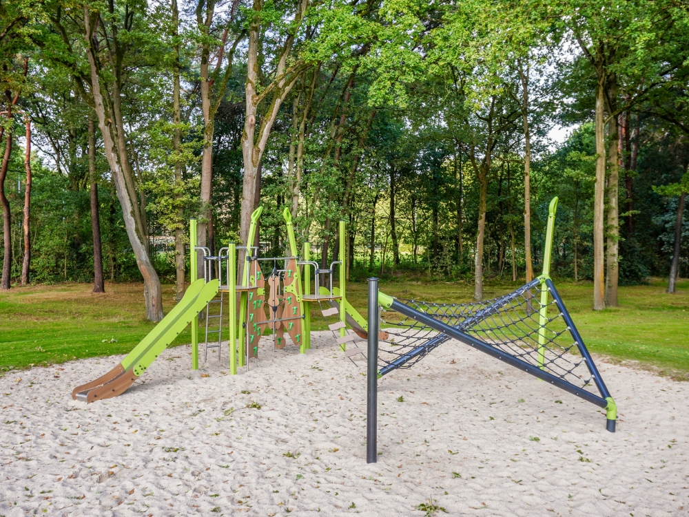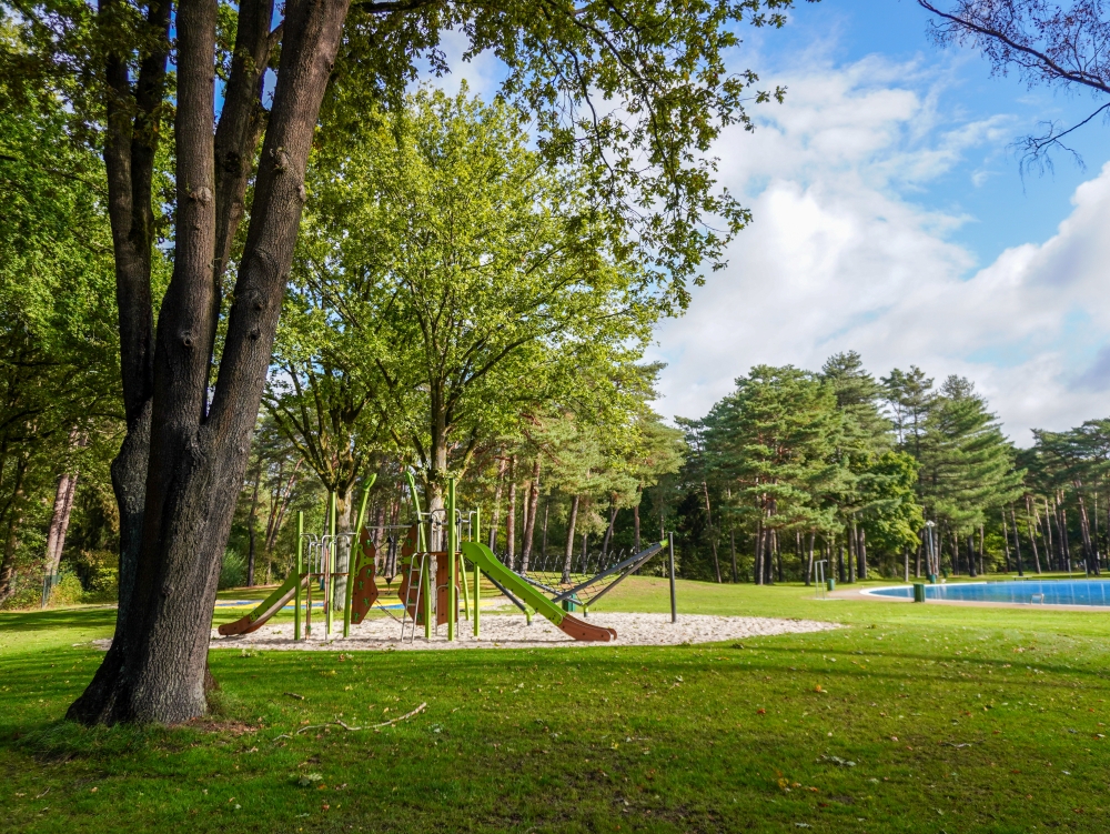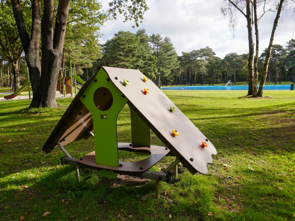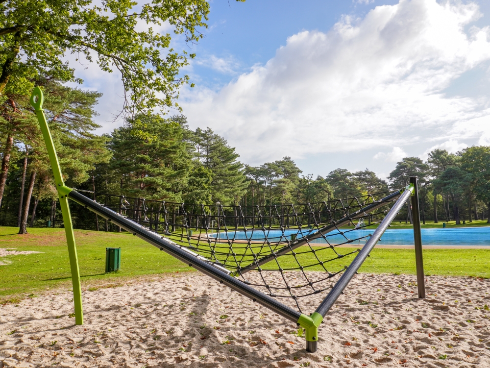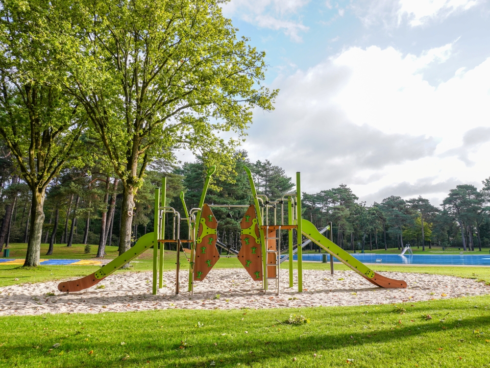 Deze speeltoestellen zijn zorgvuldig gekozen en geplaatst in de natuurlijke omgeving rondom het zwembad. Er is gekozen voor een open en groene inrichting, zonder harde overgangen. Gras, zand, bomen en water lopen op een natuurlijke manier in elkaar over. Hierdoor voelt de speelplek als een vanzelfsprekend onderdeel van het totale recreatiegebied.