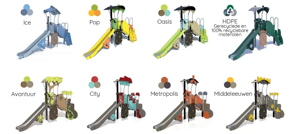 *Kleuraanpassingen en Grafic Games zijn niet beschikbaar voor Diabolo HDPE-constructies.