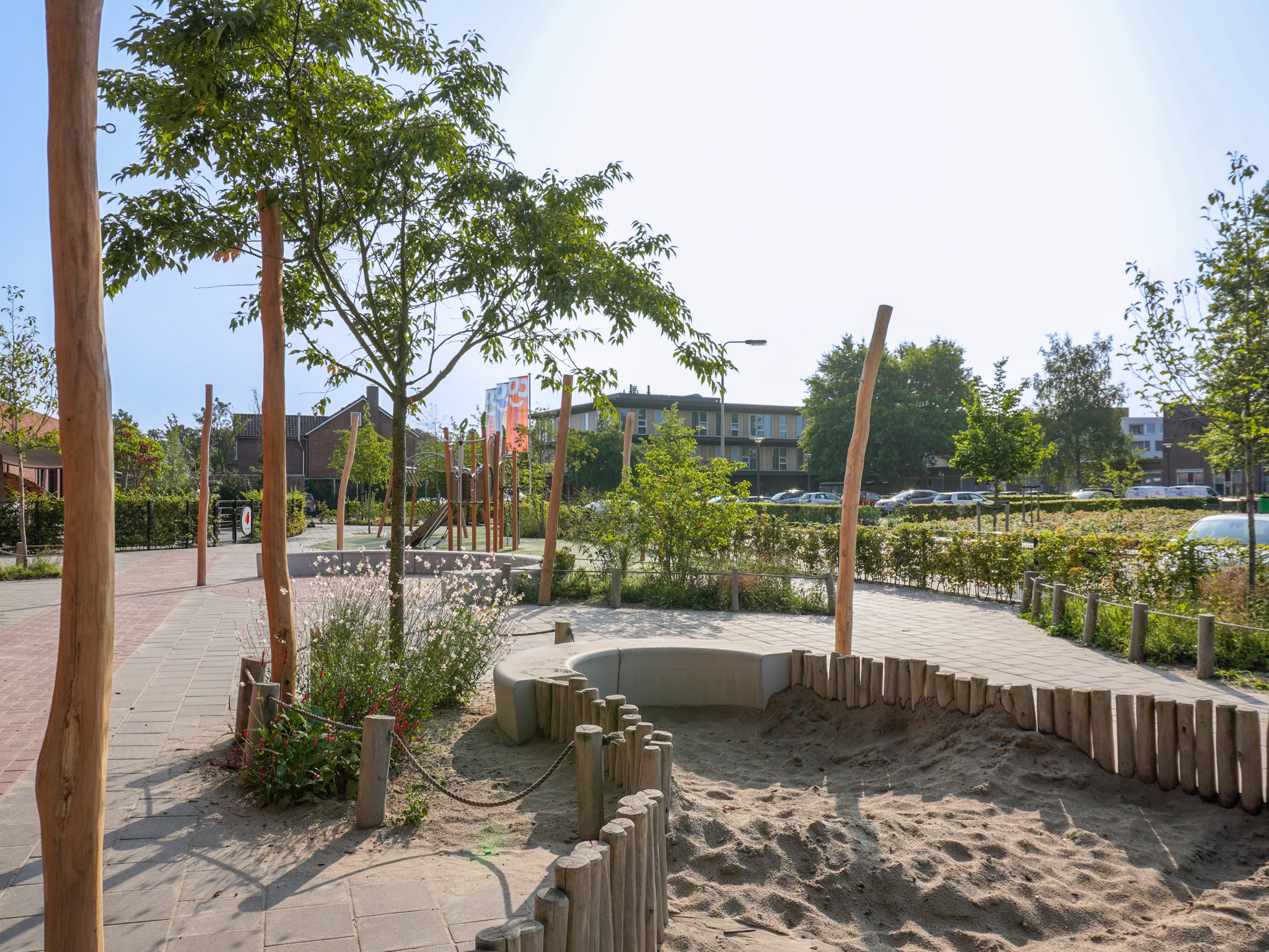 “Het eindresultaat is prachtig: een ruim en open plein met veel bewegingsvrijheid. De natuurlijke materialen in combinatie met het groen zorgen voor een natuurlijke uitstraling. De kinderen genieten er elke dag van om samen te spelen en te bewegen.”