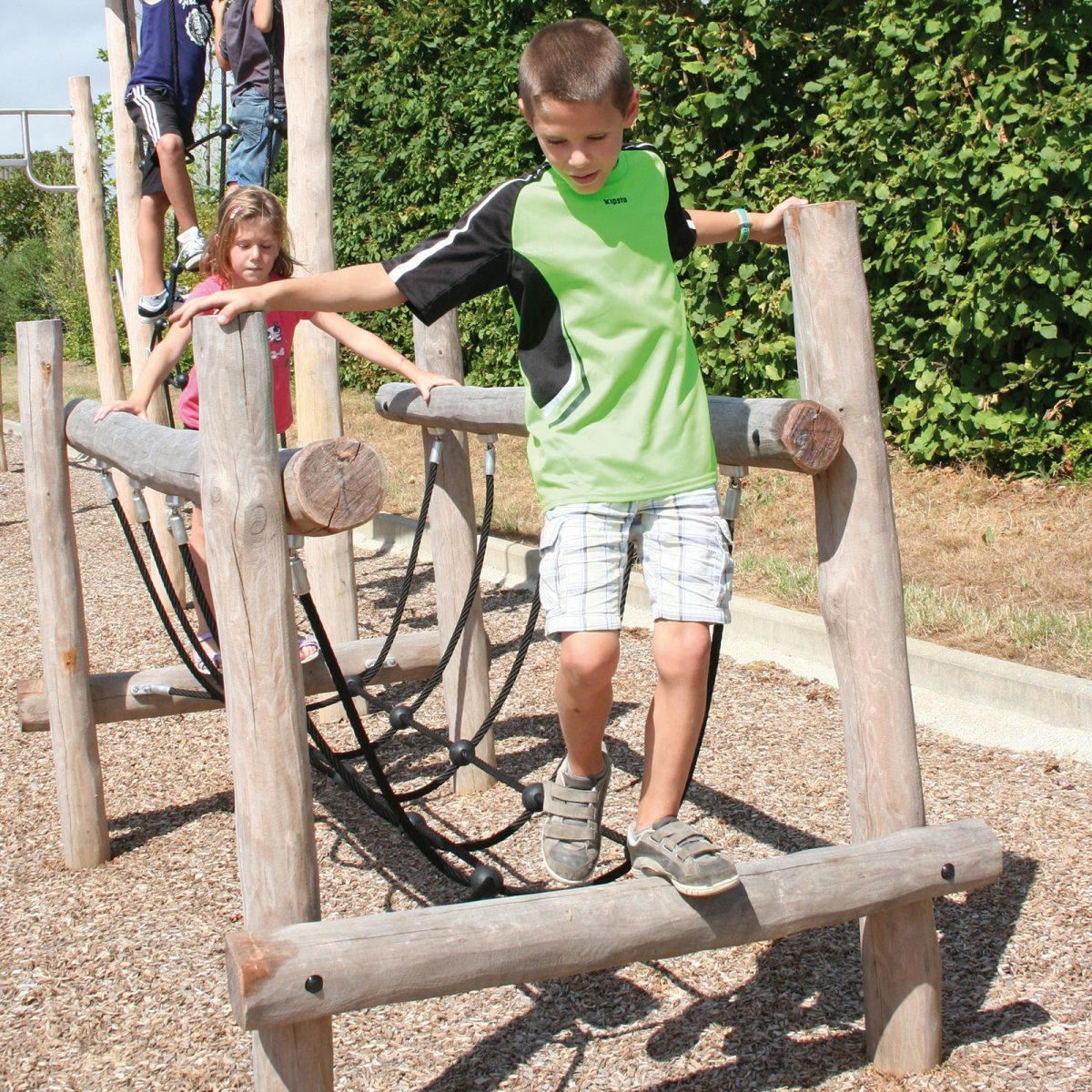 In een buitenspeeltuin nemen ze de vorm aan van een loopbrug, een bewegende brug, een klimmuur of een klimnet. Elk element is een kort parcours, met een begin en een einde, dat het kind moet oversteken. Hierbij komen evenwicht en coördinatie aan de pas. Maar ook concentratie en zelfoverwinning zijn nodig om zich voort te bewegen in de hoogte, met de schrik om te vallen.