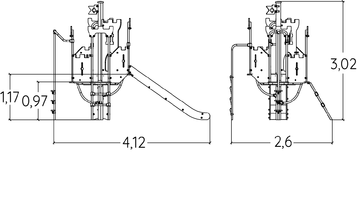 De afmetingen van de module zijn: 4,12 m lengte, 2,60 m breed, 3,02 m hoog. De vrije valhoogte (HCL) is 1,30 m.