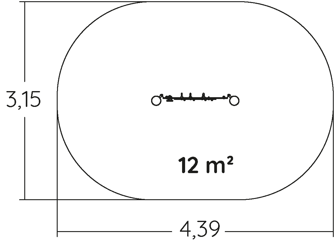 De afmetingen van de module zijn: 1,34 m lengte, 0,20 m breed, 1,10 m hoog. De vrije valhoogte (HCL) is 0,60 m.