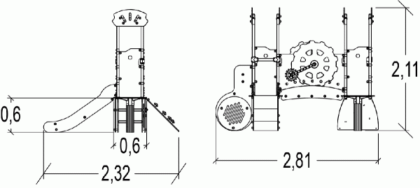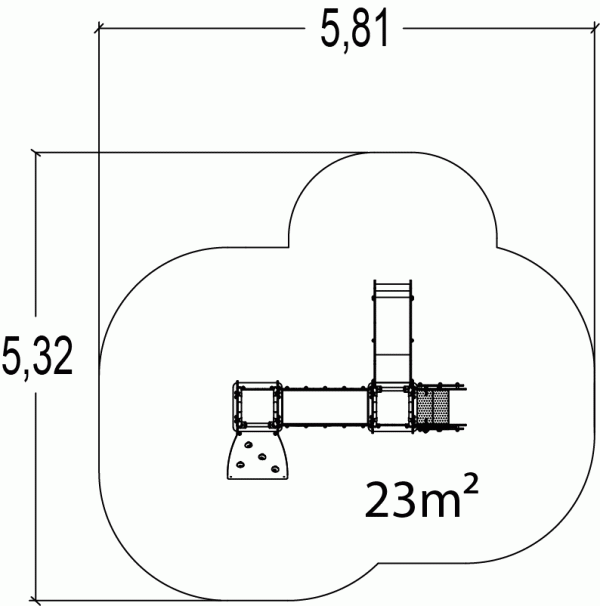 De afmetingen van de module zijn: 2,81 m lengte, 2,32 m breed, 2,11 m hoog. De vrije valhoogte (HCL) is 1,00 m.