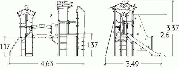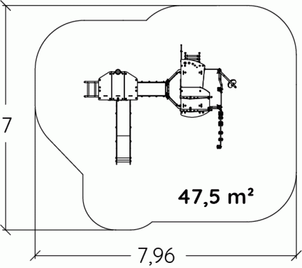 De afmetingen van de module zijn: 4,63 m lengte, 3,49 m breed, 3,37 m hoog. De vrije valhoogte (HCL) is 2,60 m.