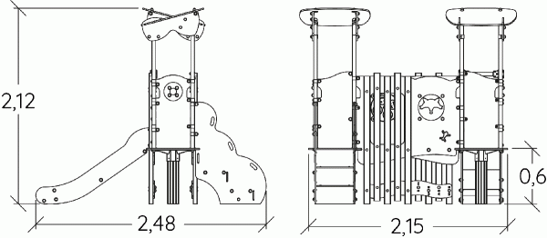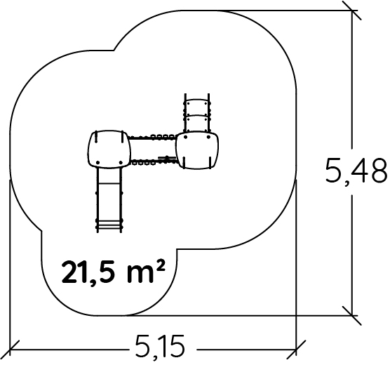 De afmetingen van de module zijn: 2,48 m lengte, 2,15 m breed, 2,12 m hoog. De vrije valhoogte (HCL) is 1,00 m.