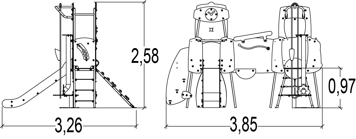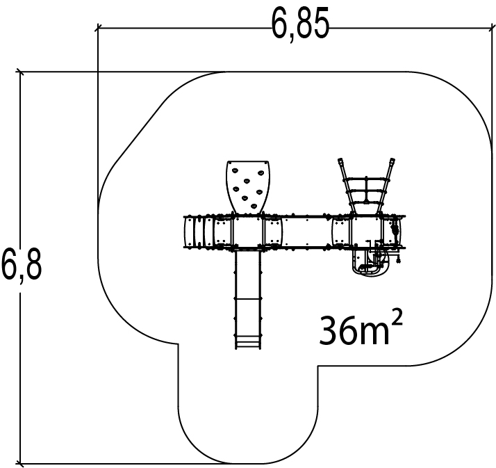 De afmetingen van de module zijn: 3,85 m lengte, 3,26 m breed, 2,58 m hoog. De vrije valhoogte (HCL) is 1,00 m.