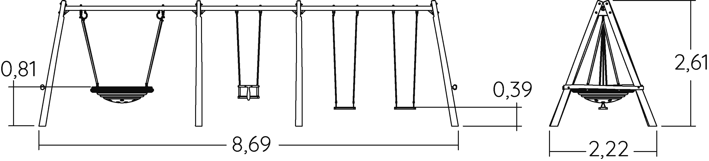 We hebben in ons assortiment de "Schommels" referentie J447-G gecreëerd. Deze module is toegankelijk vanaf 1 jaar. Ze is geschikt voor maximaal 8 gebruikers.