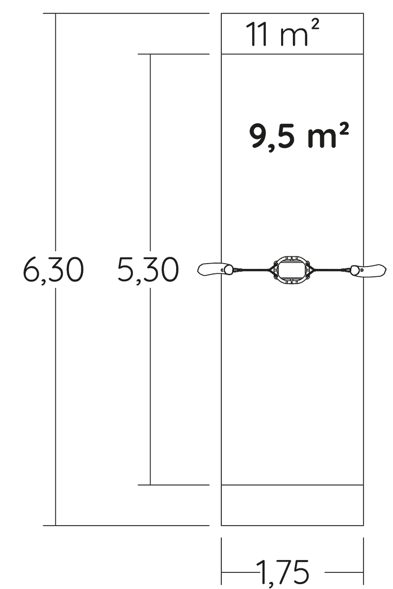 De afmetingen van de module zijn: 2,31 m lengte, 0,33 m breed, 1,58 m hoog. De vrije valhoogte (HCL) is 0,94 m.