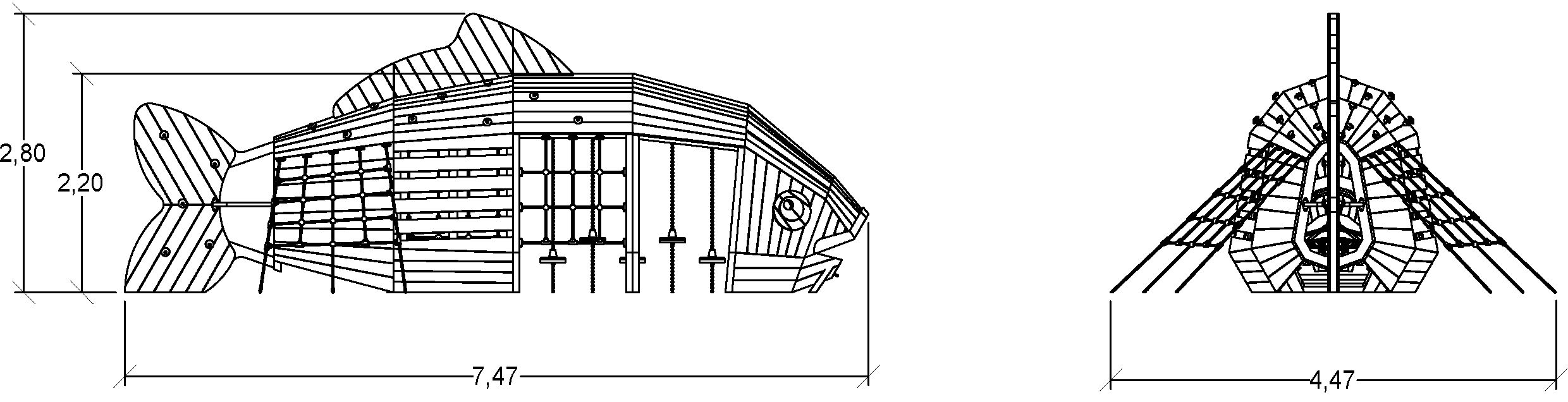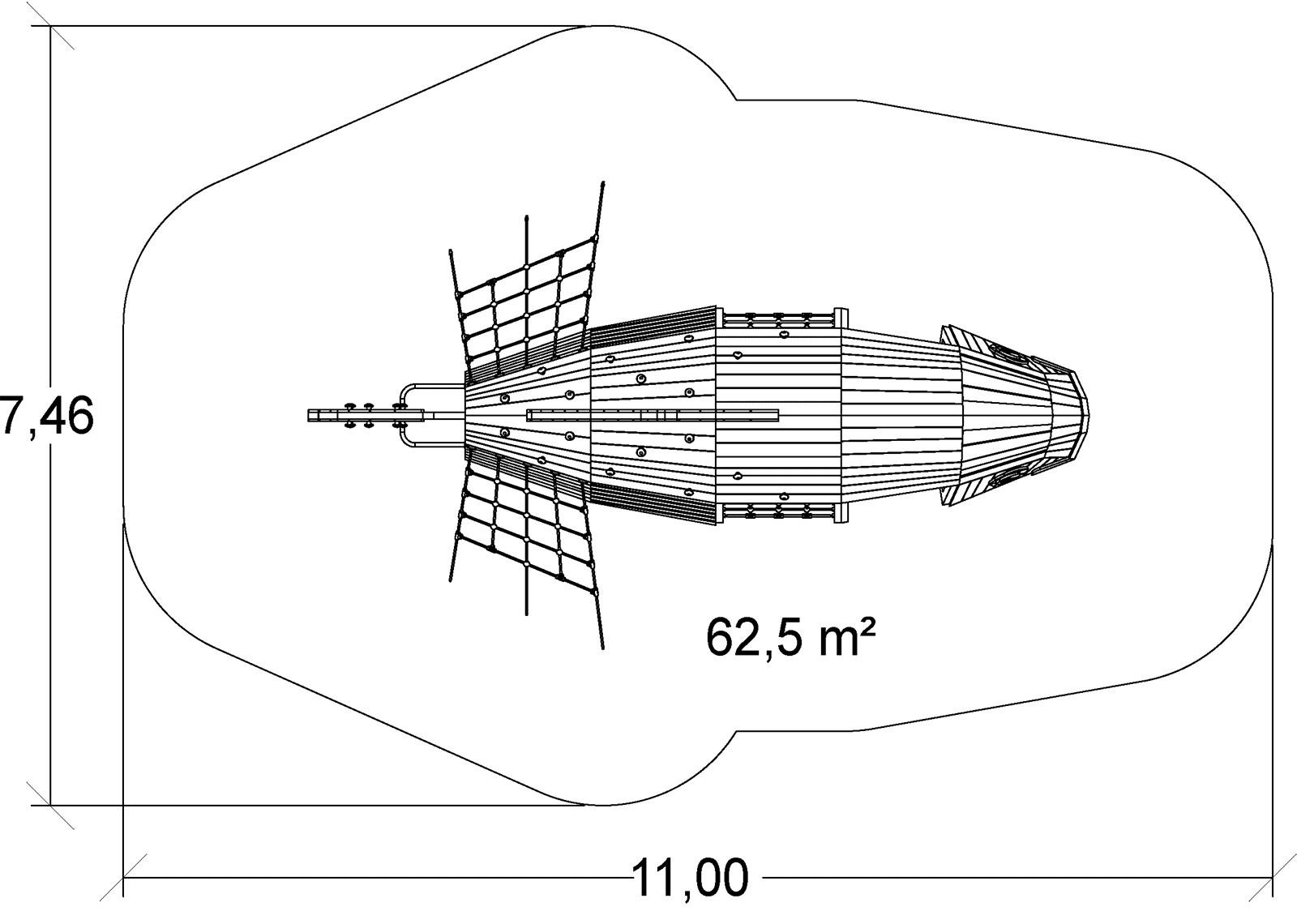 De afmetingen van de module zijn: 7,47 m lengte, 4,47 m breed, 2,80 m hoog. De vrije valhoogte (HCL) is 2,20 m.