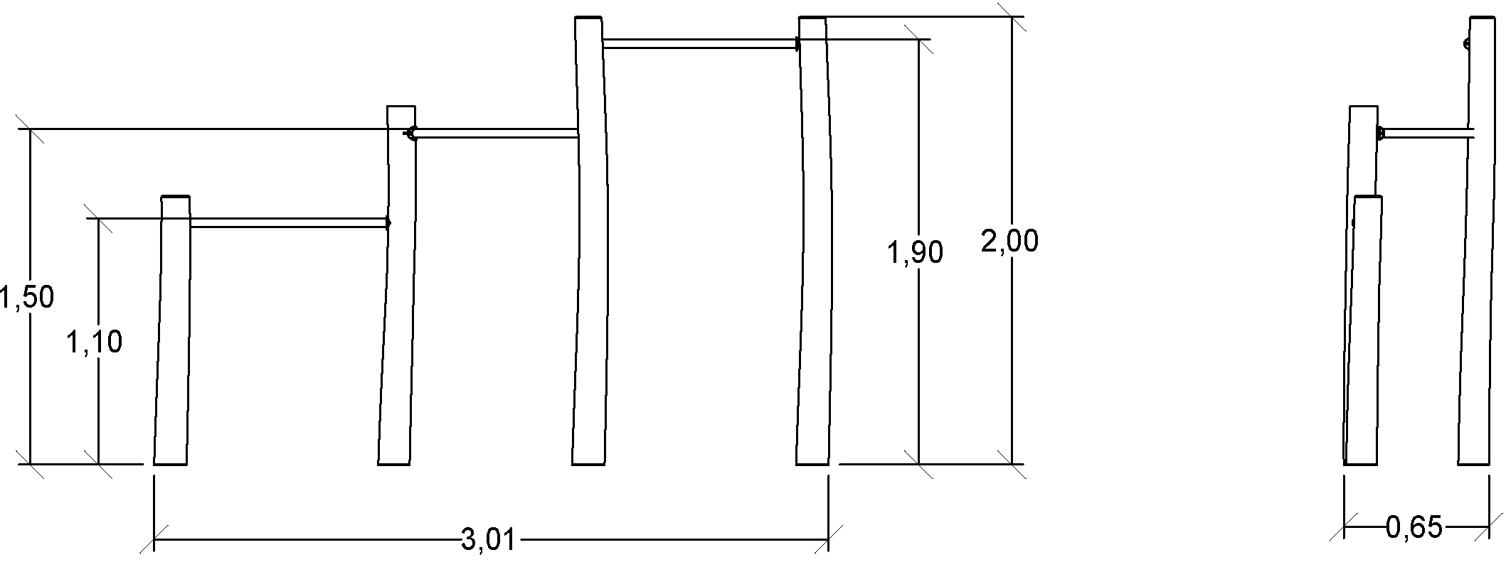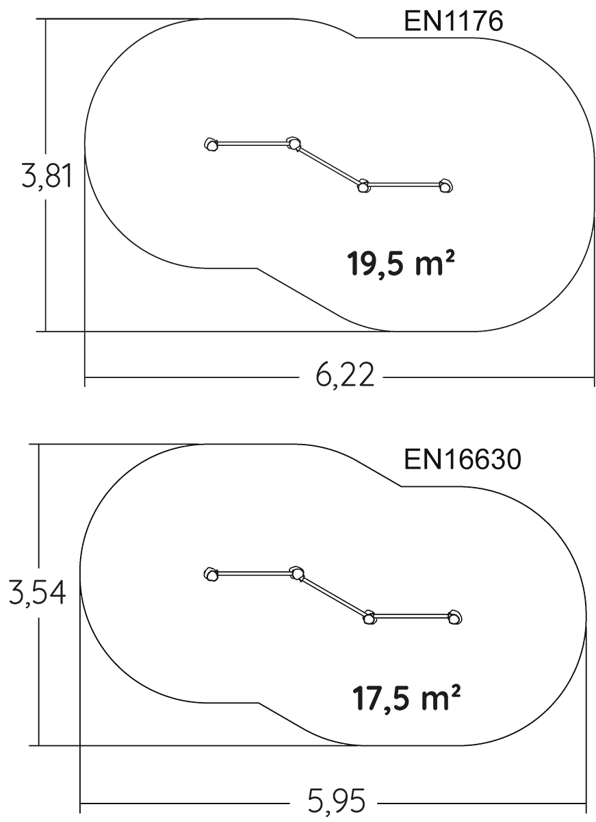 De afmetingen van de module zijn: 3,03 m lengte, 0,67 m breed, 2,00 m hoog. De vrije valhoogte (HCL) is 1,90 m.