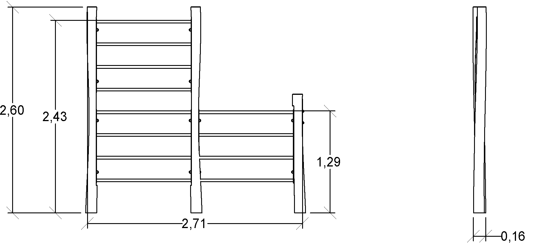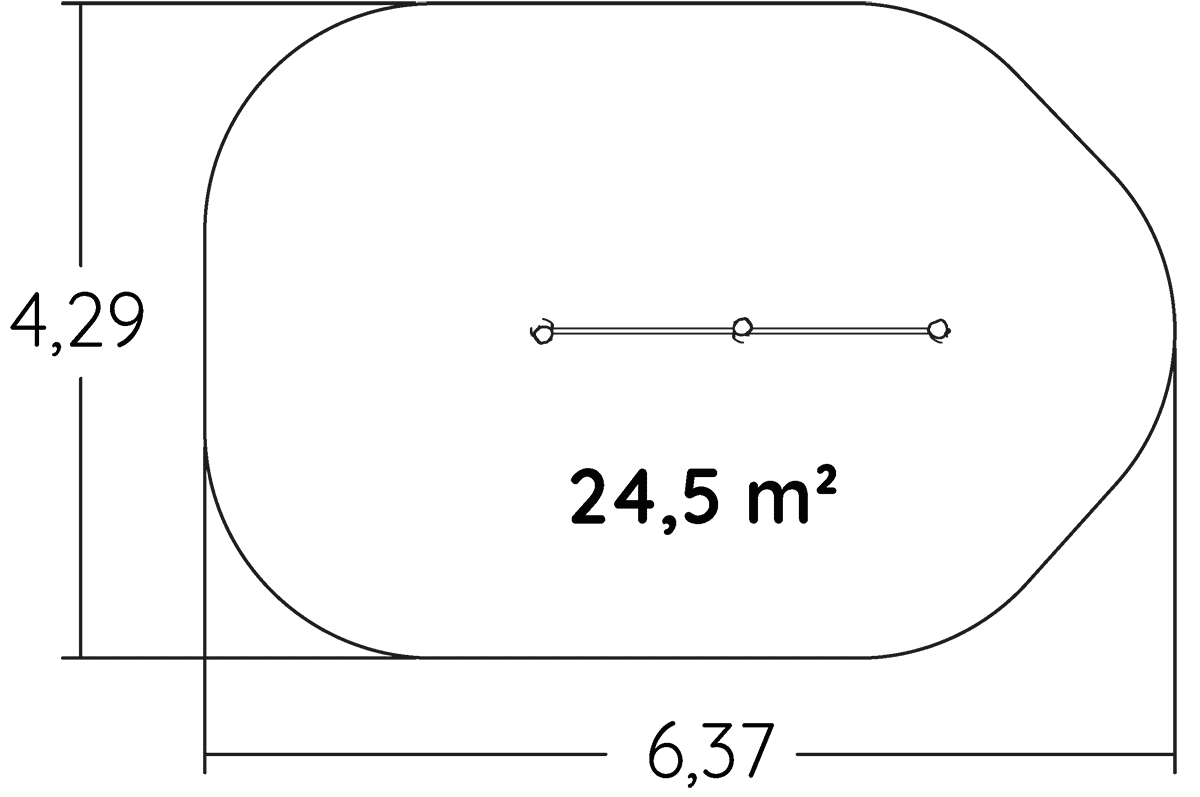 De afmetingen van de module zijn: 2,71 m lengte, 0,16 m breed, 2,60 m hoog. De vrije valhoogte (HCL) is 2,44 m.
