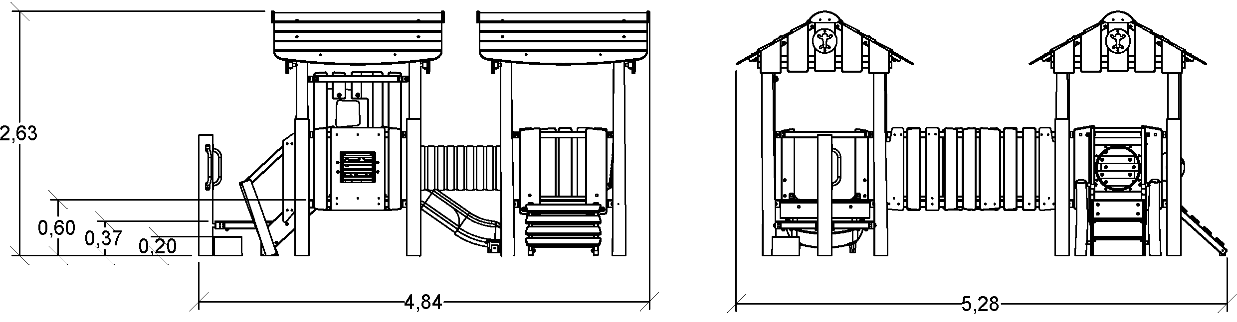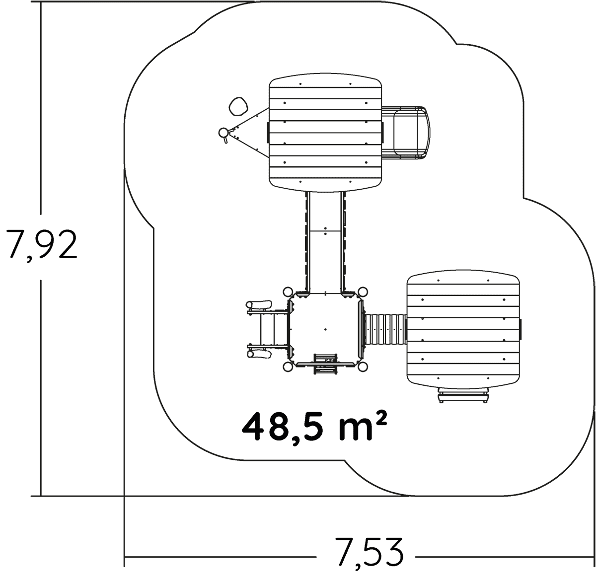 De afmetingen van de module zijn: 5,28 m lengte, 4,84 m breed, 2,63 m hoog. De vrije valhoogte (HCL) is 1,00 m.