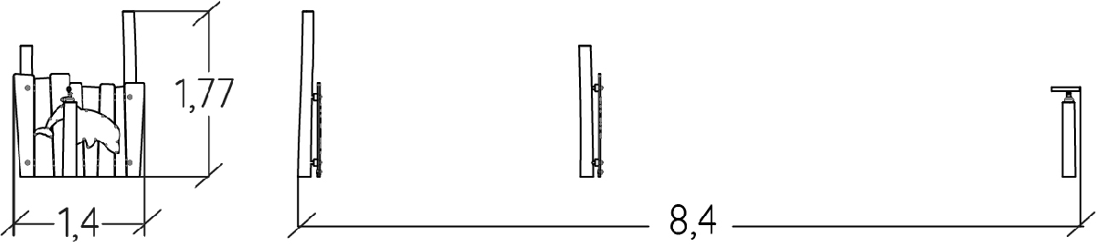 De afmetingen van de module zijn: 8,29 m lengte, 1,40 m breed, 1,77 m hoog.