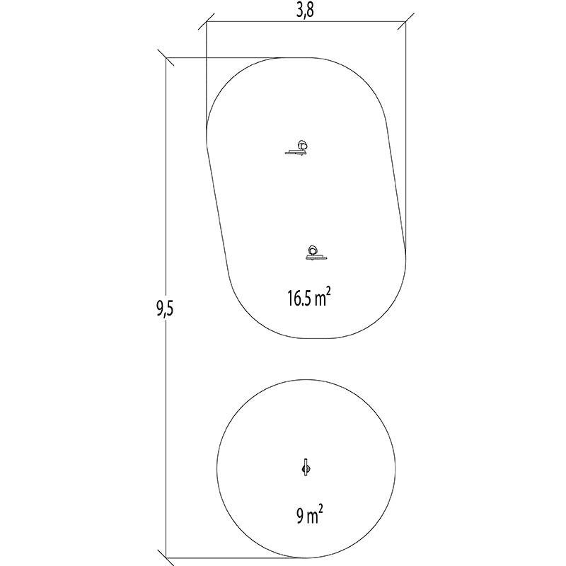 De afmetingen van de module zijn: 6,40 m lengte, 0,80 m breed, 3,30 m hoog.