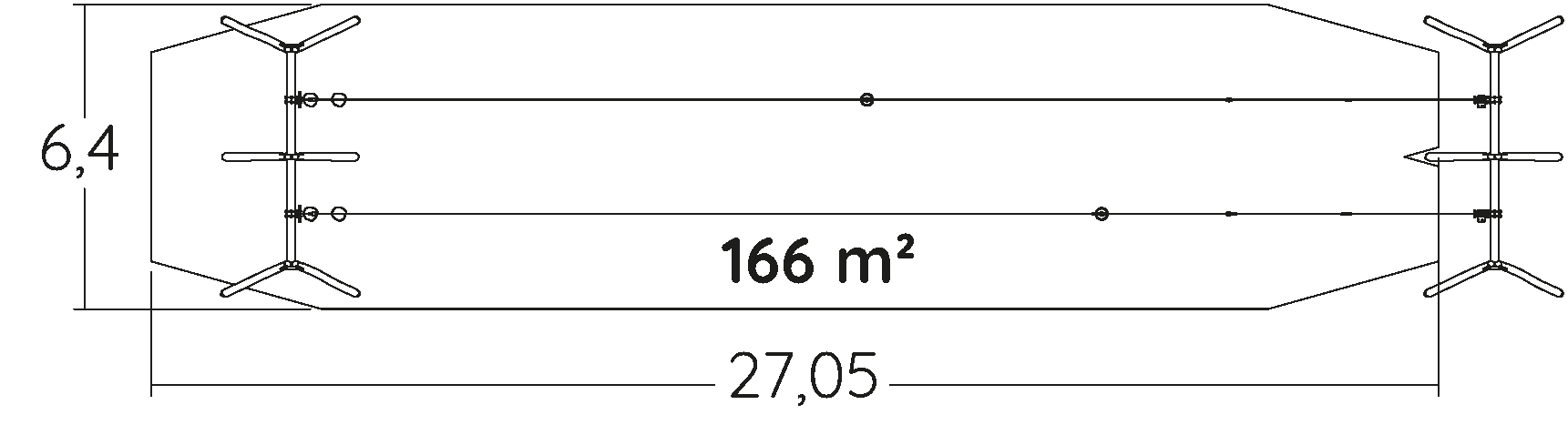 De afmetingen van de module zijn: 28,21 m lengte, 5,90 m breed, 3,53 m hoog. De vrije valhoogte (HCL) is 1,00 m.