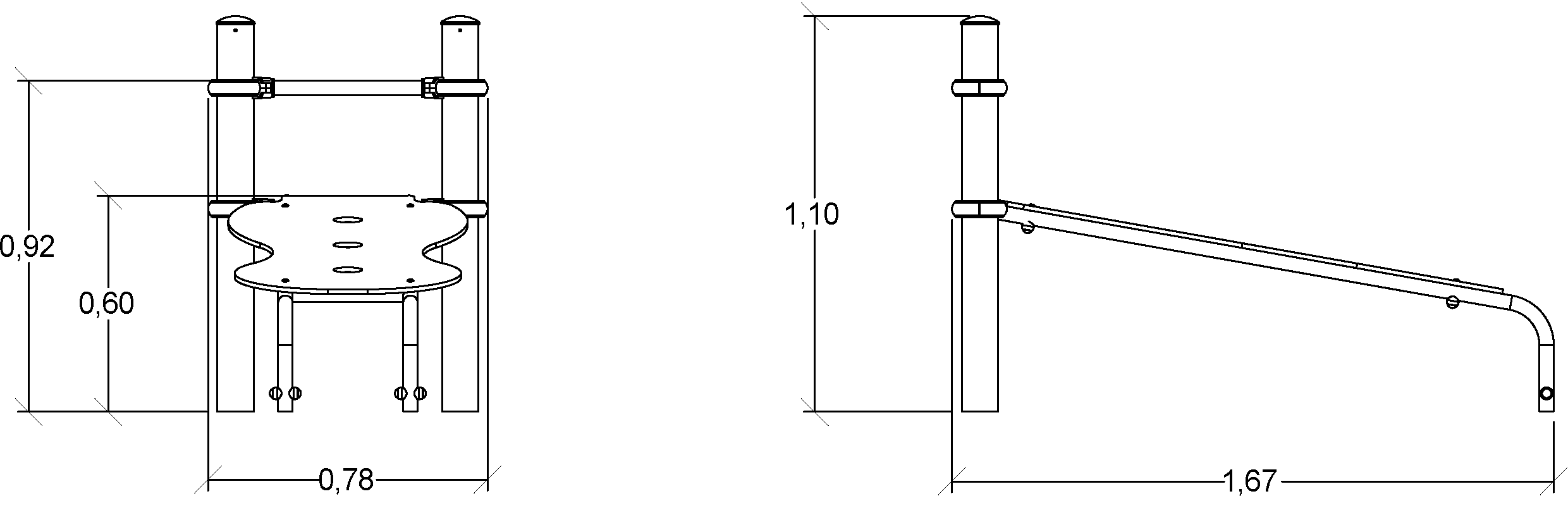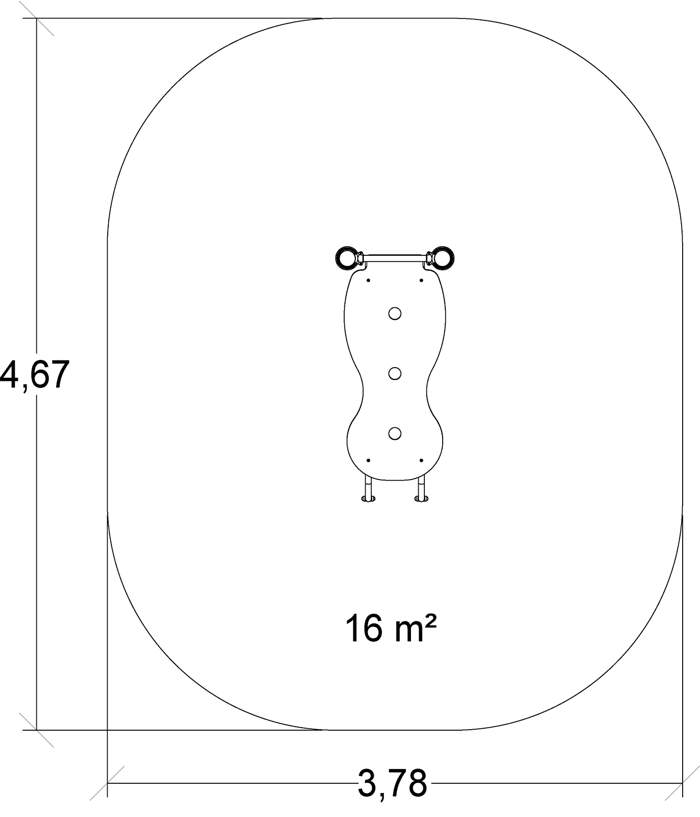 De afmetingen van de module zijn: 1,65 m lengte, 0,78 m breed, 1,10 m hoog. De vrije valhoogte (HCL) is 0,95 m.