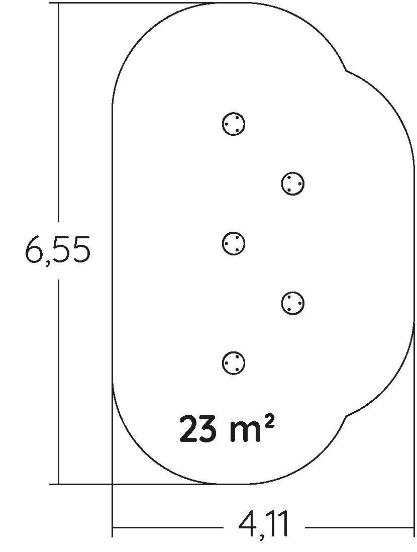 De afmetingen van de module zijn: 4,85 m lengte, 2,30 m breed, 1,45 m hoog. De vrije valhoogte (HCL) is 0,60 m.