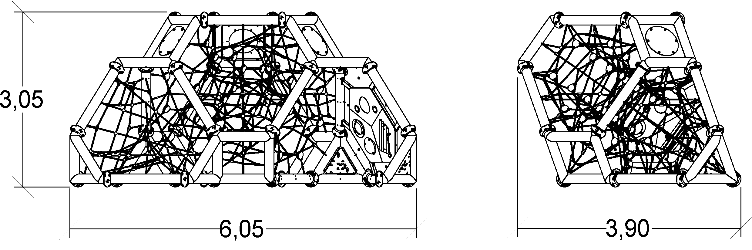 De afmetingen van de module zijn: 6,05 m lengte, 3,90 m breed, 3,05 m hoog. De vrije valhoogte (HCL) is 3,00 m.