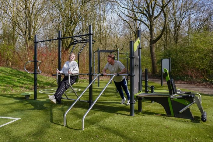 In het Overkamppark in Dordrecht is een verouderde sport- en beweegplek vernieuwd tot een eigentijdse buitenruimte voor een brede doelgroep. De oude plek werd beperkt gebruikt en sloot niet goed aan op de wensen van bewoners. Zo ontstond de vraag naar een toegankelijke, afwisselende sportplek met ruimte voor buitenfitness, calisthenics en vrij bewegen.
